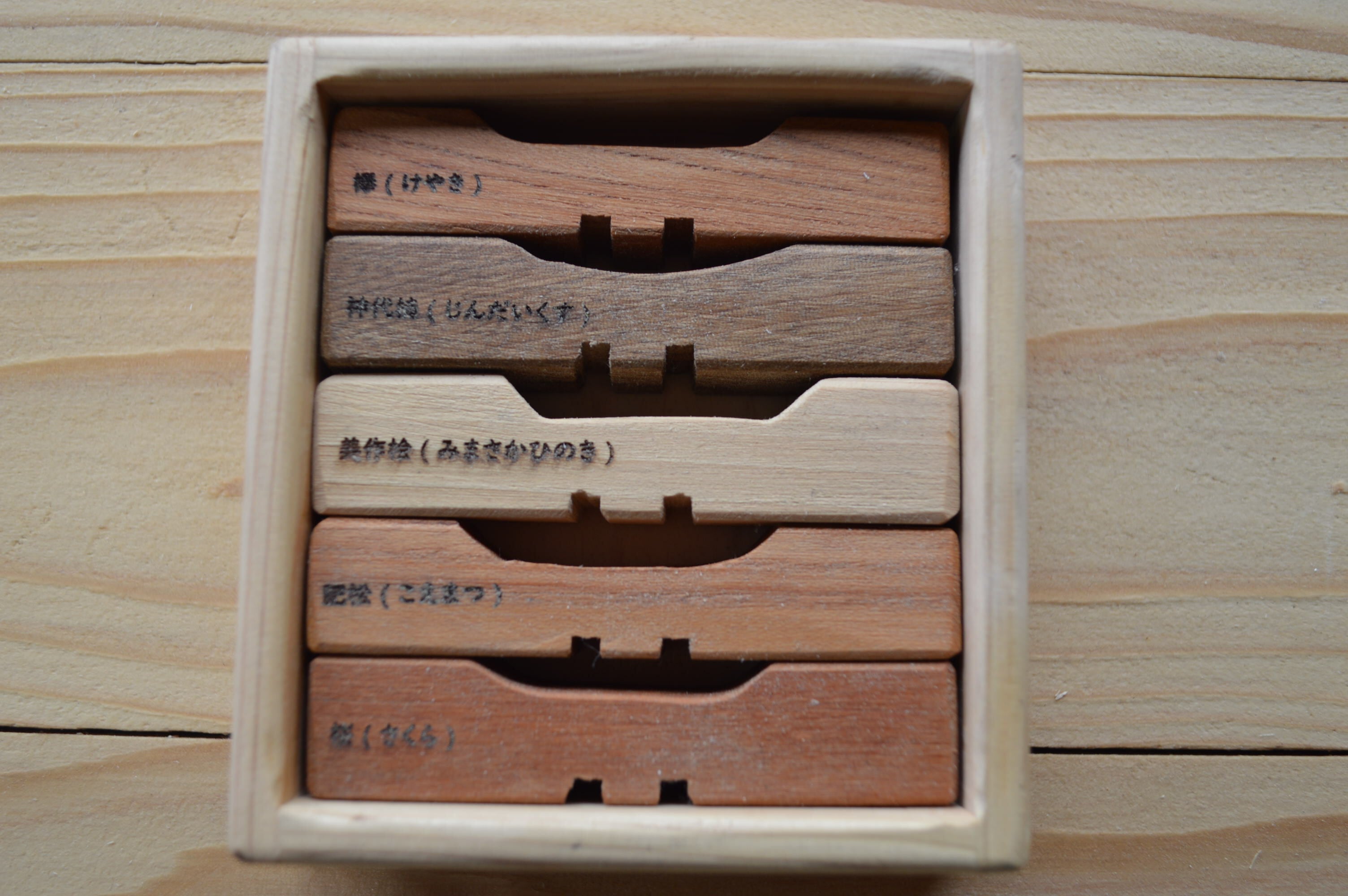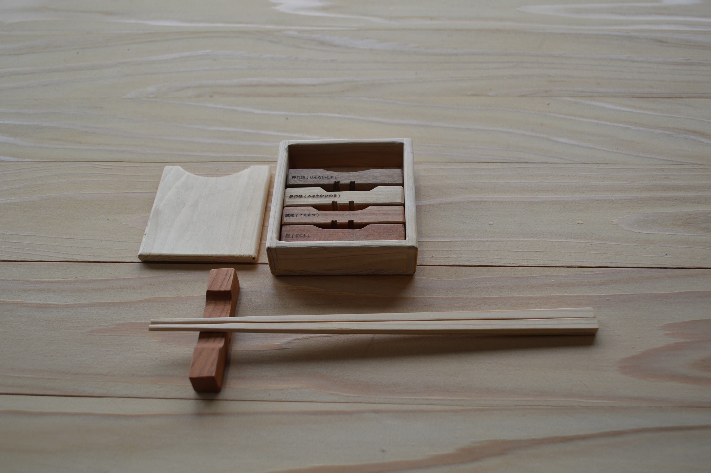 5種類の木からできたお箸置きで、